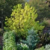 L’Acer negundo ‘Aureovariegatum’ est une autre variété d’érable à feuilles de frêne panachées, mais celui-ci présente des feuilles largement et aléatoirement marginées de jaune vif à jaune crème, parfois teinté de rose sur les jeunes pousses. Il est également intéressant pour son port souple, son jeune bois presque blanc et son développement un peu moins important que celui de l’espèce type. C’est un arbre très décoratif du printemps à l’automne : installez-le bien en vue dans le jardin et n’hésitez pas à le tailler pour qu’il produise des jeunes pousses colorées. Ce merveilleux érable s’installera de préférence à mi-ombre, pour épargner son feuillage des brûlures du soleil.