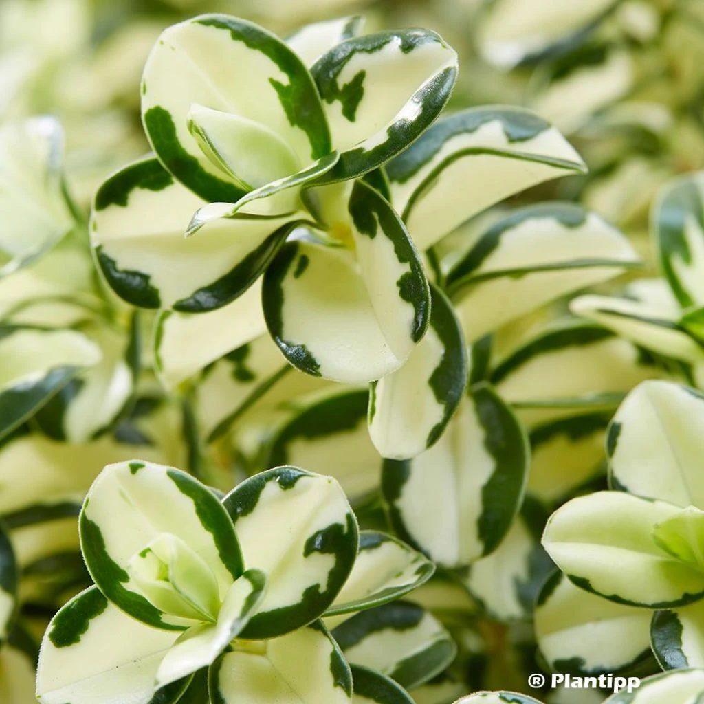 L’Hebe ‘Leopard Spot’® est une variété de véronique arbustive hybride, au feuillage panaché très original et lumineux. Les feuilles persistantes dévoilent une robe luisante blanc ivoire, tachetée de vert en bordure. En juin, une floraison violet pâle, aussi attrayante en boutons qu’en fleurs, vient compléter le tableau. Ce petit arbuste relativement rustique est facile à cultiver dans nos régions où l’hiver n’est pas trop rigoureux. Cette variété forme naturellement un beau coussin persistant, au port érigé, très compact et dense, ornemental toute l’année. La plante est résistante aux maladies, peu exigeante sur la nature du sol et économe en eau une fois bien installée au jardin. C’est aussi une excellente plante pour la terrasse.